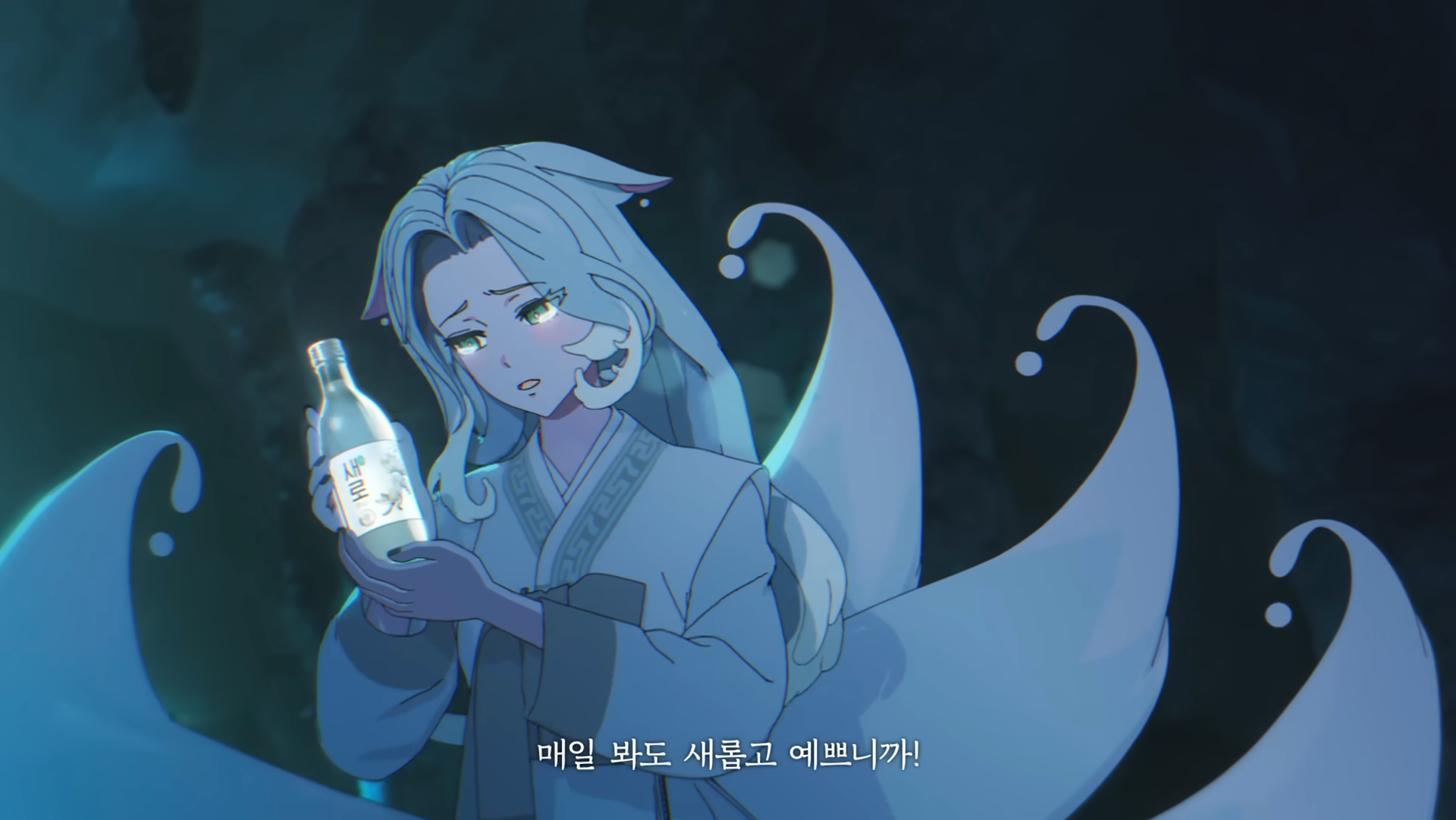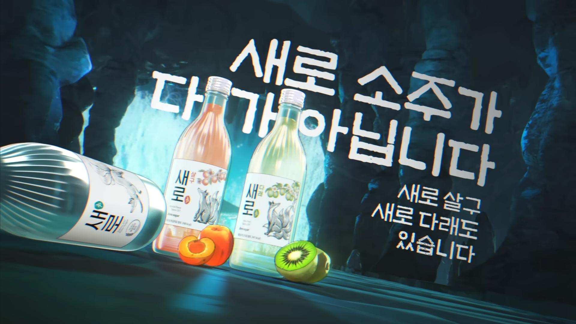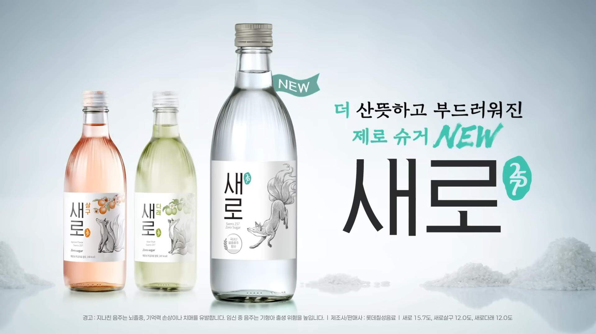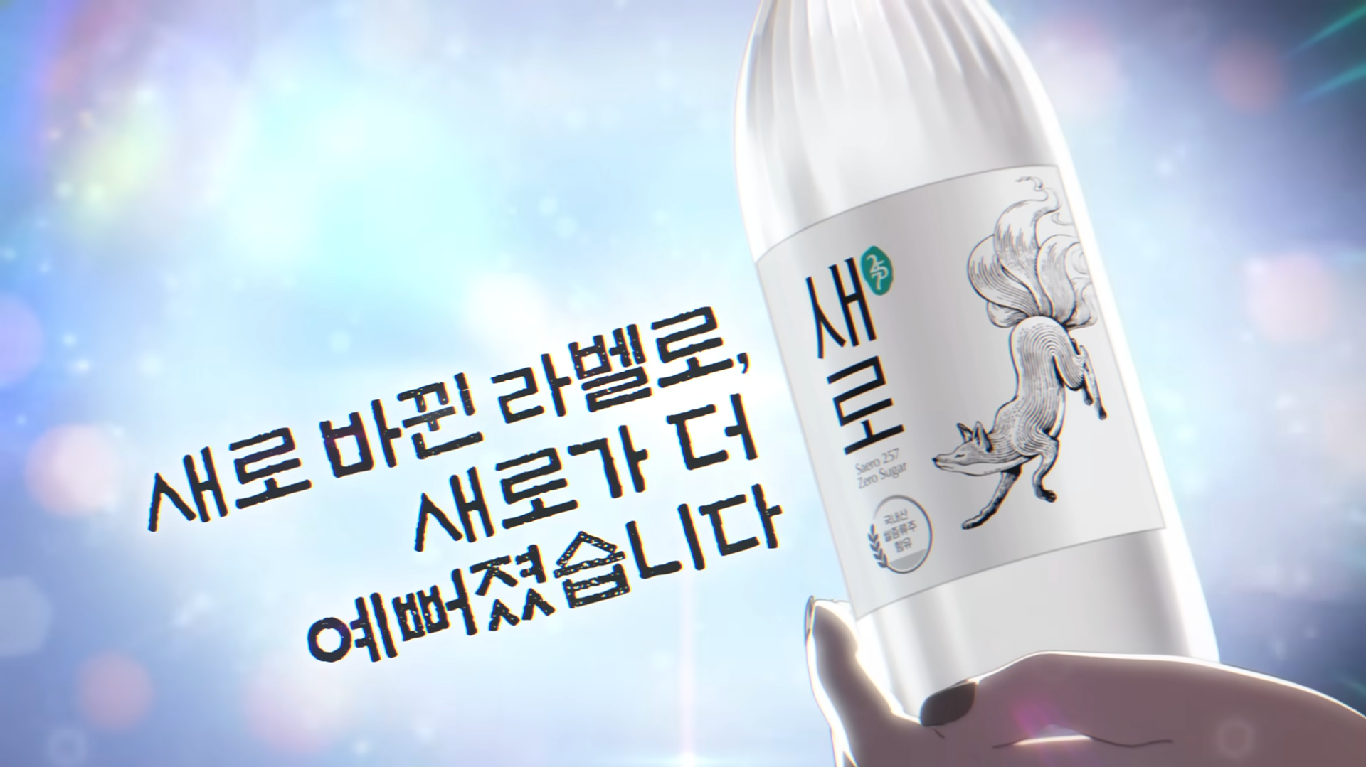 The following images are captured from Lotte Chilsung 'Saero' official brand content to showcase the label illustration in real-world applications.